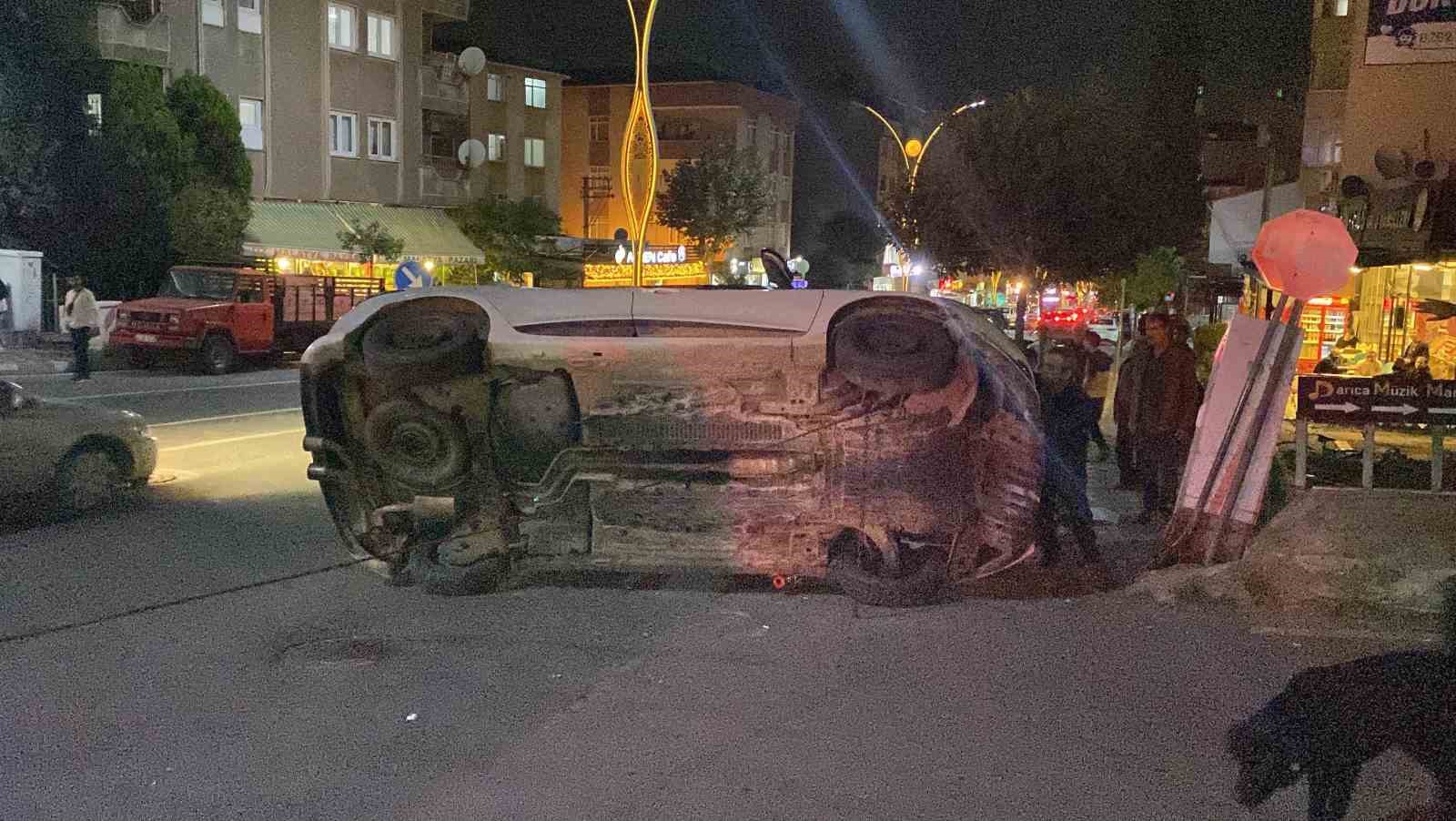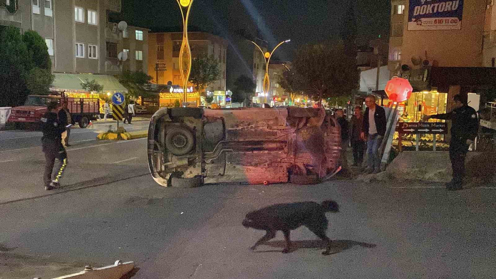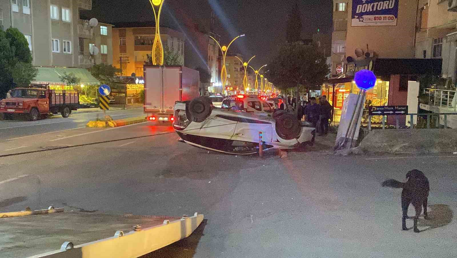 3. Halk otobüsüne çarpan otomobil takla attı, 1 kişi yaralandı: Çarpma anı kamerada