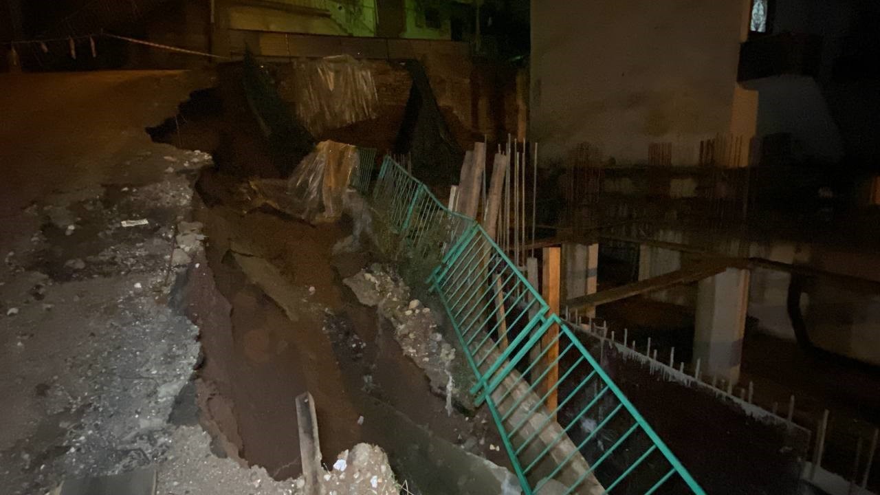Kocaeli’nin İzmit ilçesinde yağmur sebebiyle yumuşayan toprağın kayması neticesinde istinat duvarı ve yolun bir kısmı çöktü. Dün de aynı mahallede benzer olay olduğu belirtildi.