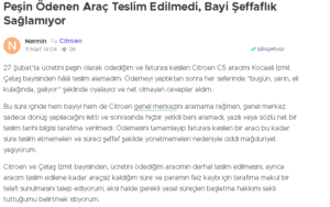 3. İzmit’teki Citroen Çetaş Bayisi, Peşin Ödeme Yapılmasına Rağmen Araç Teslim Etmiyor