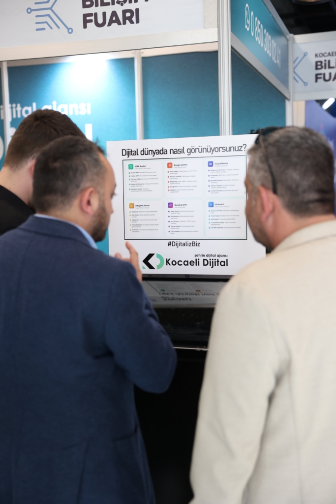 Kocaeli Bilişim Fuarı 2025’i ziyaret eden tüm işletmeler, B70 numaralı standı ziyaret ederek hem Kocaeli Dijital’in çözümlerini inceleyebilir hem de markaları için özel Dijitaliz analizini ücretsiz olarak alabilir.