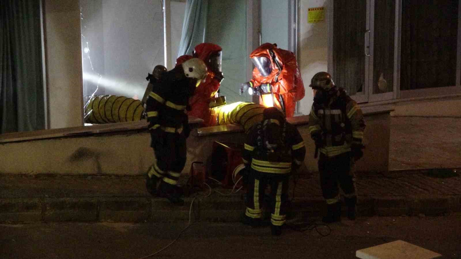 Olay, 4 Ekim günü gece saatlerinde Hacı Osman Mahallesi Özer Sokak’ta bulunan işyerinin 2’nci katında meydana geldi. İddiaya göre, iş yerinde depolanan alüminyum fosfit ile suyun reaksiyona girmesi neticesinde patlama meydana geldi. Patlamanın şiddetiyle dükkanın camları kırılırken, etrafa zehirli gaz yayıldı. Olay ardından evlerinden tahliye dilen 43 kişi ise, gaz seviyelindeki düşmeyle tekrardan evlerine döndü. Patlamanın ardından geniş çaplı inceleme başlatıldı. Kimyasal maddeyi lavaboya döktüğü ve iş yerinde sorumlu olduğu tespit edilen S.G., Ö.B., O.B. ve A.K. çıkarıldığı mahkemece adli kontrol şartıyla serbest bırakıldı.