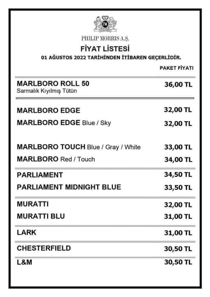 Gıda, elektronik, akaryakıt gibi birçok ürüne zam gelmeye devam ederken bir zam da sigaraya geldi. En son 4 Temmuz’da gelen sigara zammının ardından bugün bir sigara grubuna daha zam geldi. Philip Morris sigara grubuna gelen zammın ardından güncel fiyatlar ise şöyle;